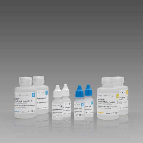 Kit for detection of the periodic acid-Schiff reaction in leukocytes.