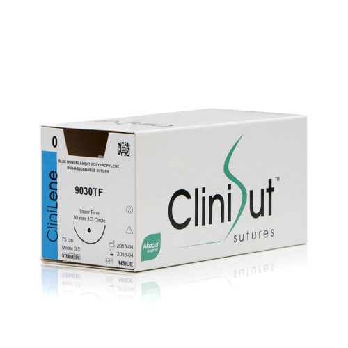 CliniLene is a nonabsorbable surgical suture made from polypropylene which is a synthetic monofilament, produced from a linear hydrocarbon polymer. It is a smooth suture with minimal tissue drag and due to its high ability to remain flexible and its tensile strength and inertness it is the ideal suture for cardiovascular surgery and hernia repair where permanent support is needed.
