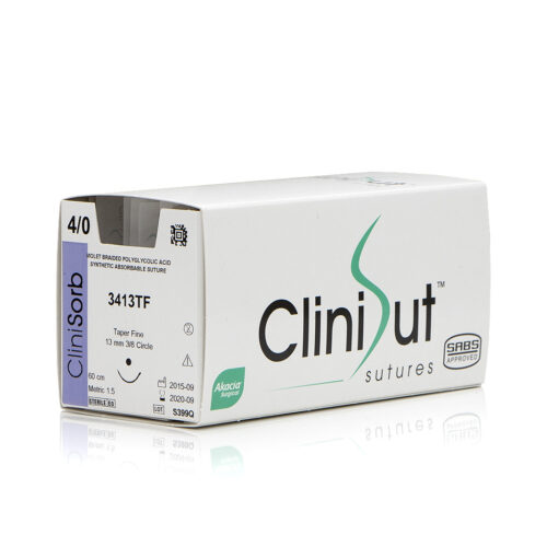 CliniSorb is a synthetic absorbable braided surgical sutures made from a polymer of glycolic acid, has a high tensile strength and predictable absorption rate, allowing wound support for approximately 21 days. Not affected by infection, inflammatory processes or exposure to protein digesting enzymes. Suitable for both skin closure and where non-permanent wound support is indicated.