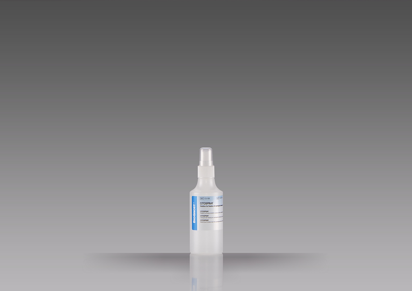 Impeccable sample fixation is a prerequisite for a correct cytological diagnosis. Tissue samples must be immersed in an optimally chosen fixative immediately after sampling, while they are still moist. Imminent fixation of the sample prevents drying and cell shape change, in turn enabling clear staining and a correct diagnosis. If the sample was fixated later than it had been recommended, brownish grainy structures will form on cytological samples stained according to Papanicolaou, and that has a negative effect on the further diagnostic procedure. Used for fixating Pap smears.