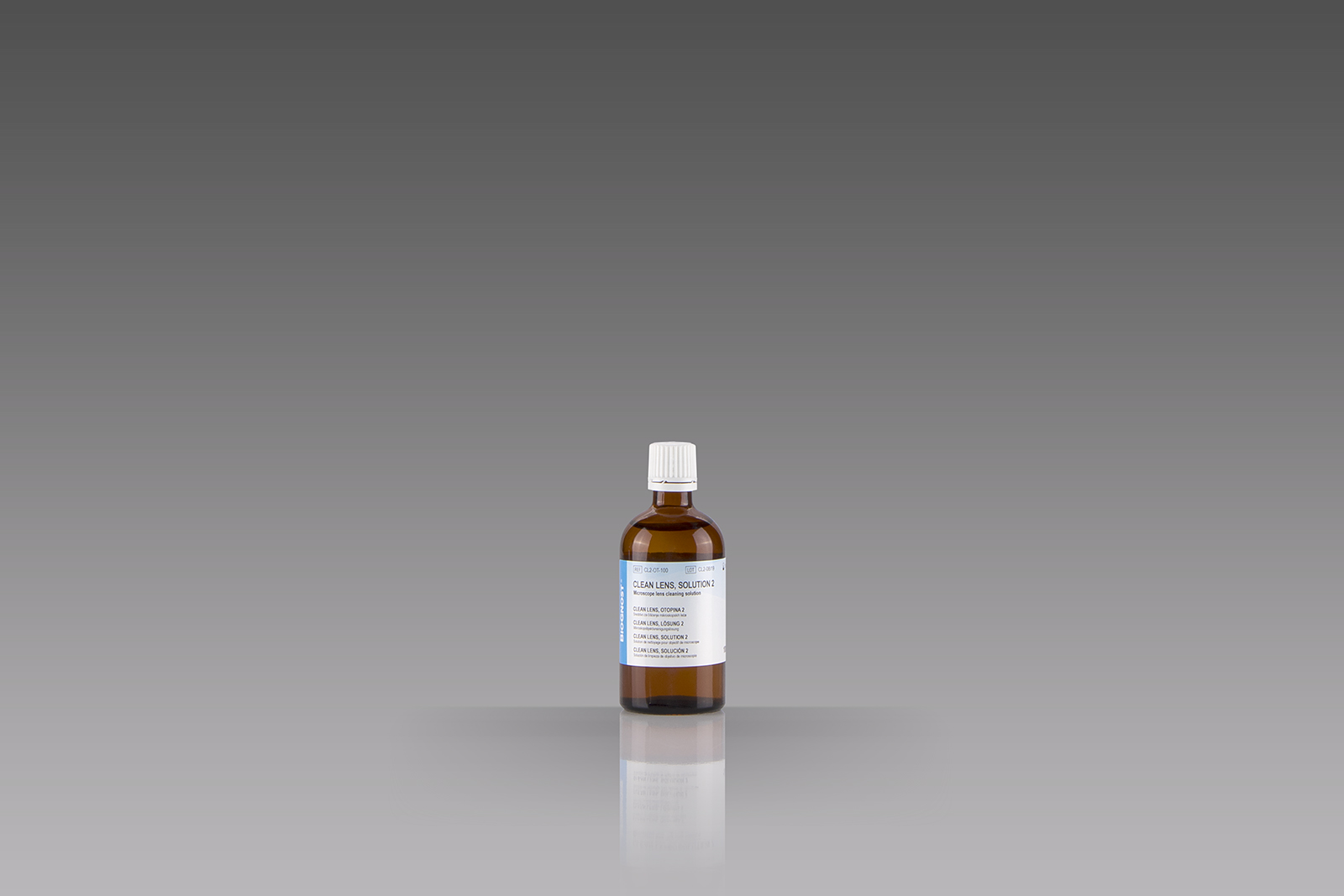 During routine work in every laboratory impurities on a microscope lens is a common occurrence. A clean lens is one of the main prerequisites for successful microscopy and a clear image. Clean Lens solution is ideal for cleaning microscopy lens, but also for removing immersion oil from glass slides. It is packaged in a glass bottle with a dropper that enables precise and simple use.