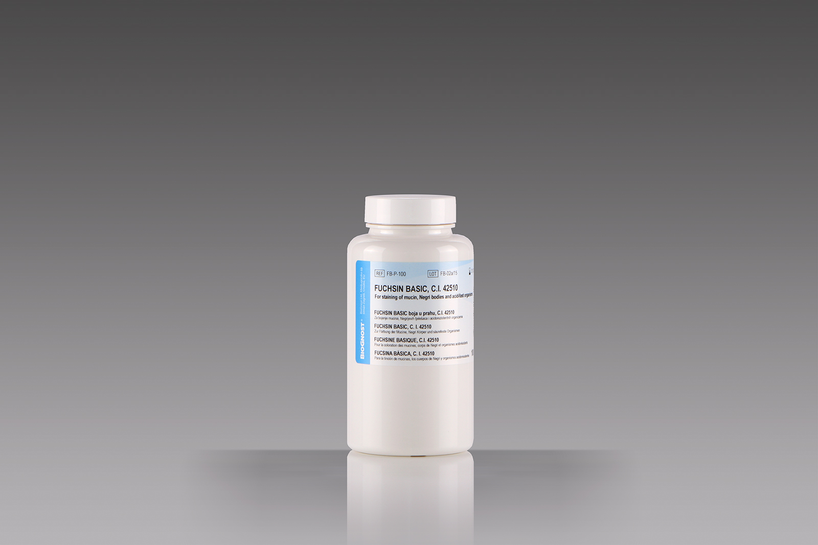 Histology, cytology and other related scientific disciplines study the microscopic anatomy of tissues and cells. In order to demonstrate a good tissue and cellular structure, the samples need to be stained in a correct manner. Fuchsin Basic dye is used for staining and microscopical identification of mucins, Negri bodies and acid-resistant organisms. It is a mixture of Rosanilin, Pararosaniline, New Fuchsin and Magenta II dyes. All the ingredients of Basic Fuchsin are soluble in water and alcohol. For very sensitive staining procedures it is recommended to use pure Pararosaniline solution. Fuchsin Basic dissolved in phenolic solution acts as a dye enhancer and it is called carbol fuchsin and it is used for staining bacteria that cause TBC.