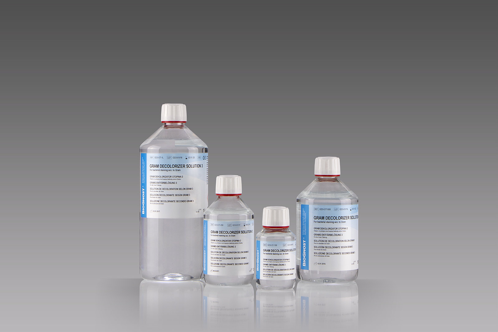 BioGnost’s Gram Decolorizer 3 solution is a transparent ethanol and acetone solution. It is used in microscopic microbiological diagnostics in processes of Gram staining. Gram Decolorizer 3 solution acts quickly and is suitable for staining methods that require rapid destaining or for use with staining machine.