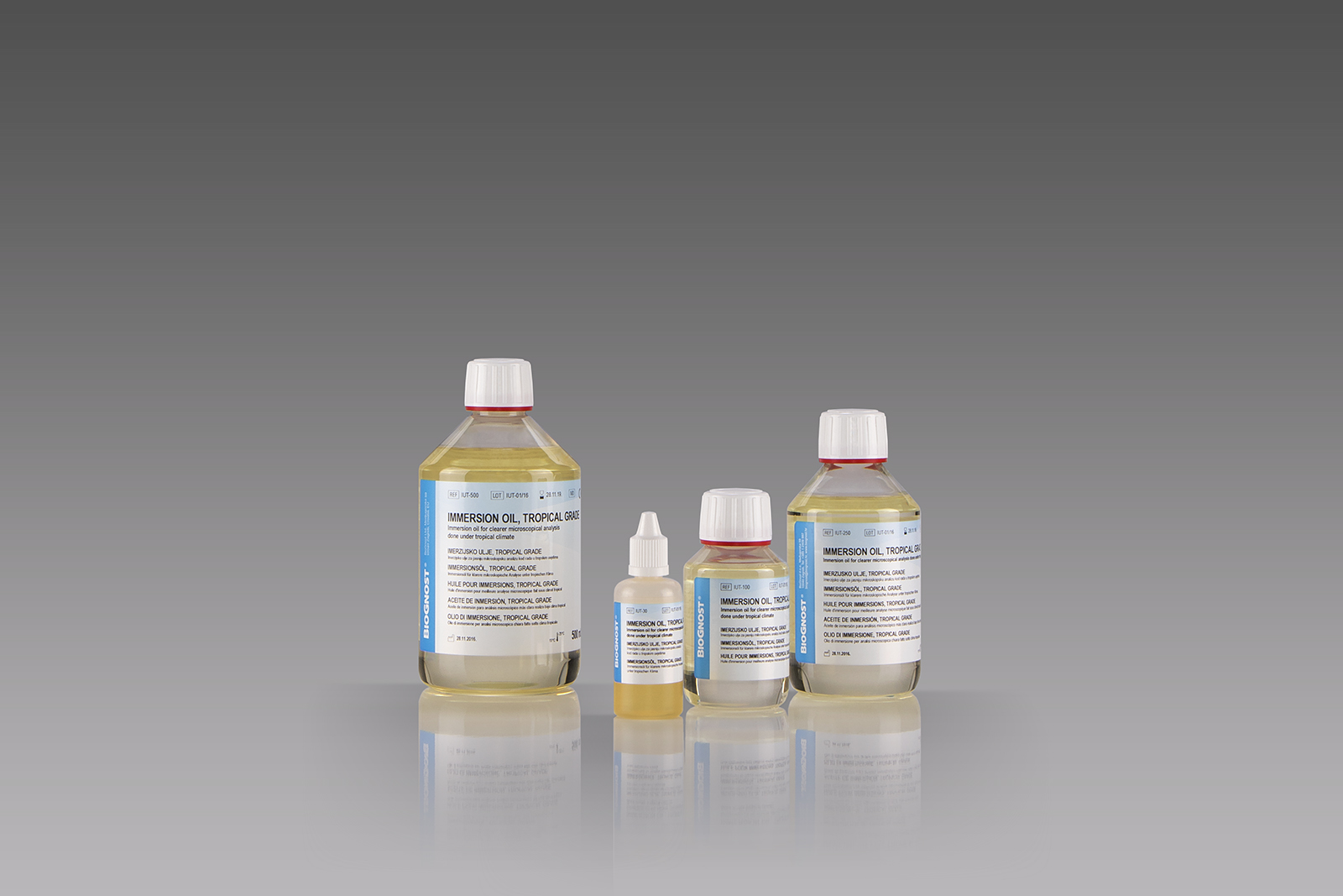 Immersion oil is used for microscopic examination of prepared samples with as much detail as possible thereby contributing to a safer diagnostic conclusion. The Refractive index of BioGnost’s Immersion oils is equal to the refractive index of cover slips and a glass slide. Add one drop of BioGnost’s immersion oil on the cover glass, then immerse the immersion objective. Since the rays of light are passing through from the section to the objective through the same refractive index media, they are not refracted, so the image of the section looks clearer and with much more details.