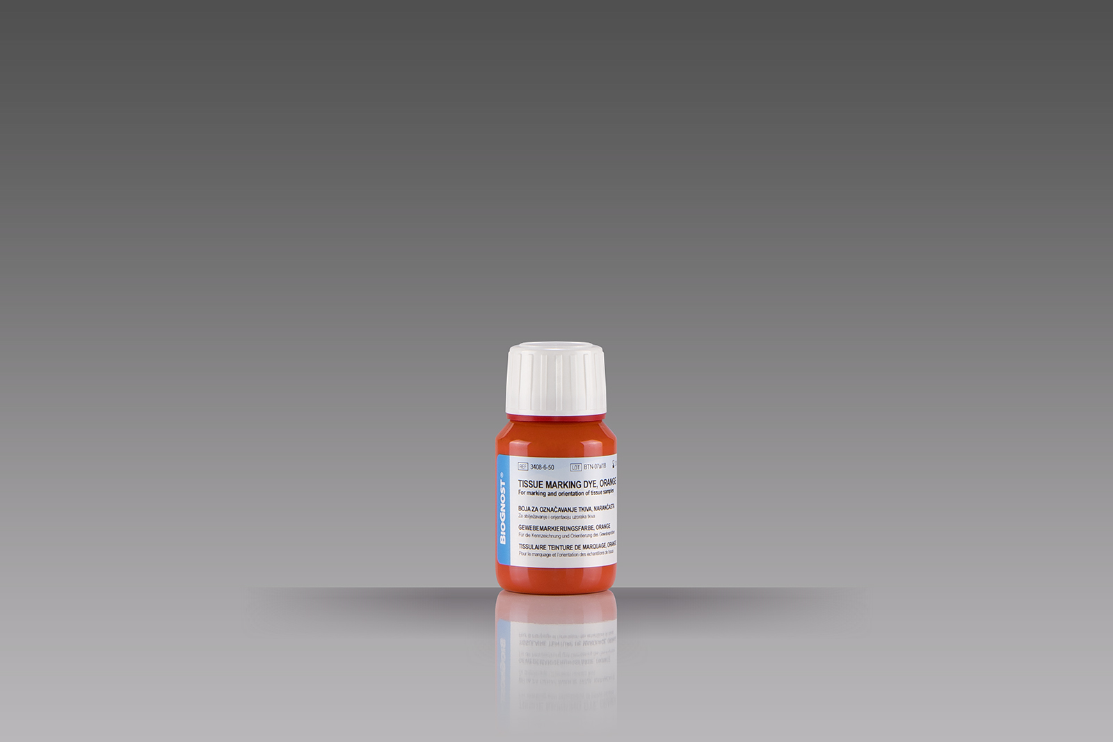 Tissue marking dyes are used in marking and orientation of tissue samples for histopathological processing. Only removed tissues can be marked. Dye pigments can create permanent stains on living tissues, which is why the dye must not be applied on living patients.