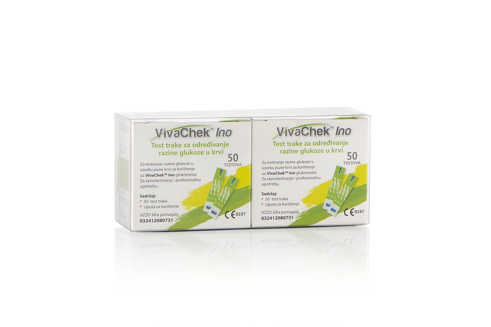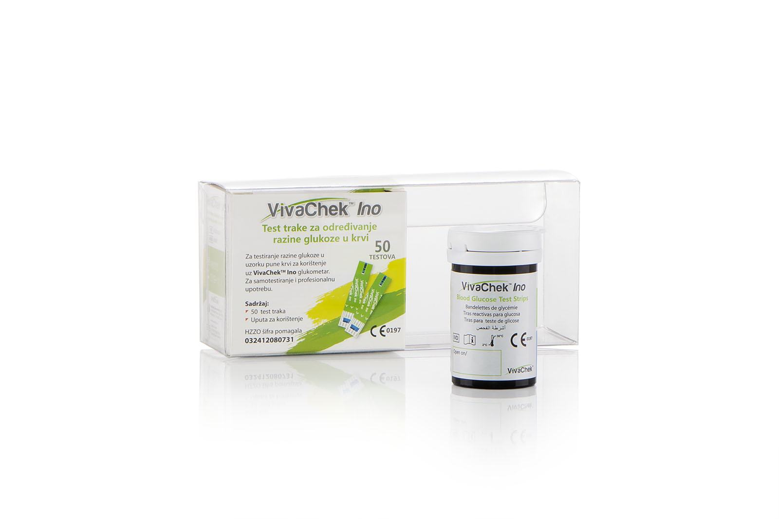 VivaChek ™ Ino test strips intended for use with VivaChek ™ Ino glucometer and together form a system for quantitative measurement of glucose concentration in fresh capillary blood sample.